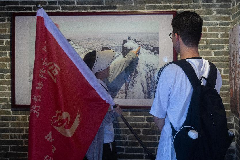 图为实践团成员感受钟乳石。 (湛江科技学院朝阳实践团 刘丽娴供图)