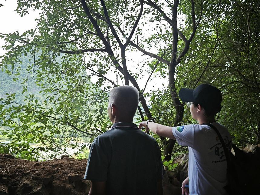 图为村长爷爷在给实践团成员讲解溶洞历史 (湛江科技学院“朝阳”实践团供图)
